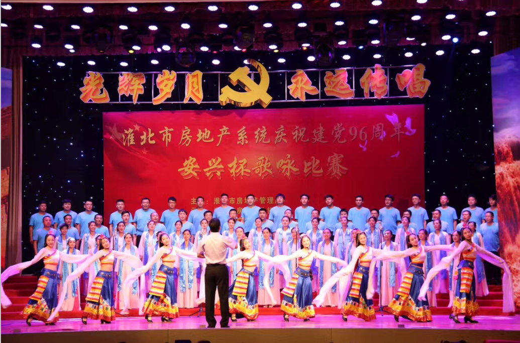 6月25日下昼,,,,,由市房管局主理、市房地工业协会承办,,,,,市广播电视台、淮北安兴古镇公司协办的“绚烂岁月、永远传唱”庆祝建党96周年大合唱角逐,,,,,在淮矿集团圆会中心举行 。。。。