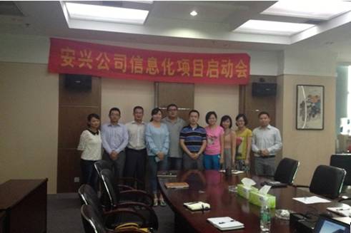 2013年9月23日上午,,,,,安兴生长公司所属安兴营销策划有限公司在CBD广场六楼聚会室召开了ERP信息化项目启动会。。项目小组组长顾可仑、副组长张昕、各案场司理、要害用户及用友软件公司本项目团队认真人加入了聚会。。